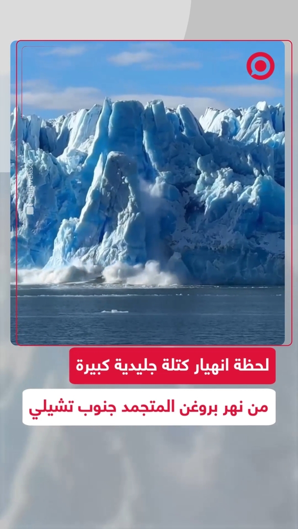 انهيار جليدي ضخم من نهر بروغن المتجمد في تشيلي يذهل سائحا وثق اللحظة