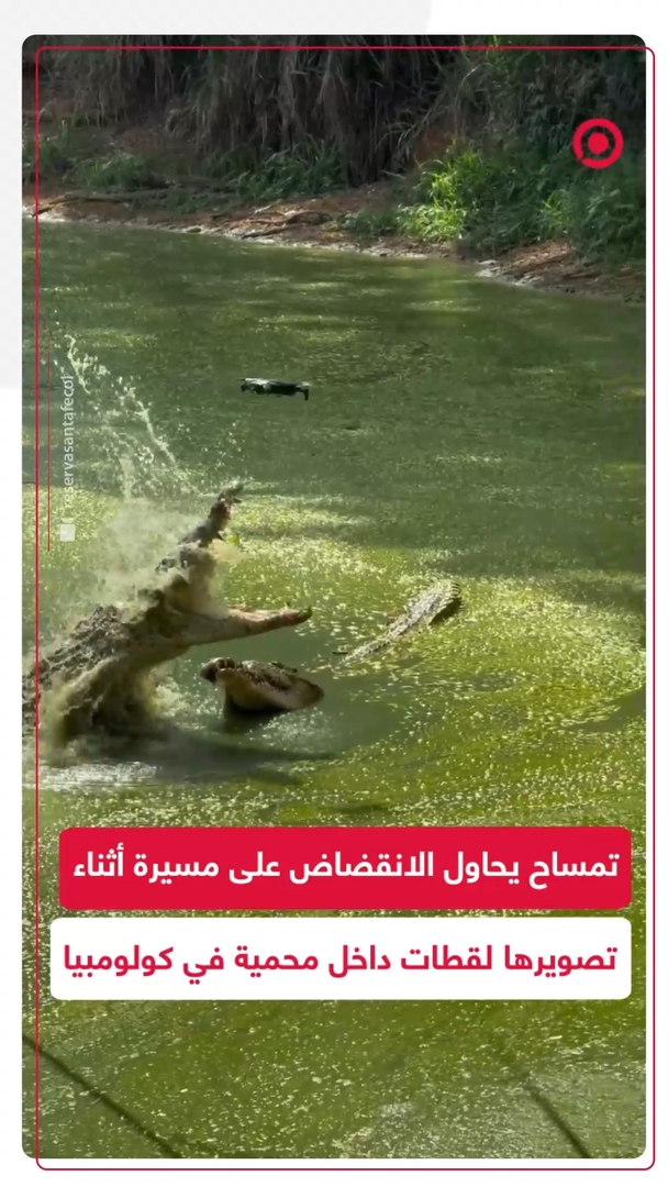 تمساح ضخم يحاول الانقضاض على طائرة بدون طيار داخل محمية في كولومبيا