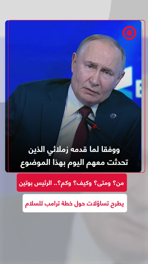 الرئيس الروسي فلاديمير بوتين خلال كلمته في منتدى "فالداي" الدولي للحوار، يطرح عدة تساؤلات عملية حول آلية تنفيذ خطة ترامب للسلام وتفاصيلها والمدة الزمنية وإلى أي جهة، مشيرا إلى الصعوبات المحتملة في حل القضايا الأمنية.
