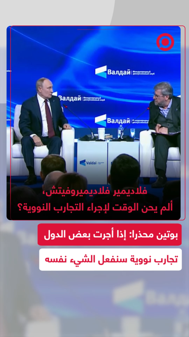 الرئيس الروسي فلاديمير يوجه بوتين تحذيرا واضحا بشأن احتمال استئناف التجارب النووية، مشيرا إلى أن روسيا على علم بأن بعض الدول تستعد لإجراء مثل هذه التجارب.