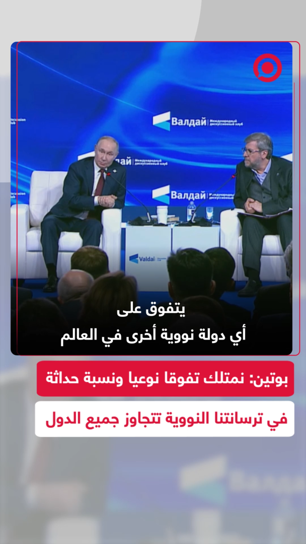 "المختصون يعرفون جيدا ما تعنيه قوات الصواريخ الاستراتيجية الروسية".. الرئيس الروسي فلاديمير بوتين، يؤكد أن روسيا تمتلك تفوقا نوعيا ونسبة حداثة في ترسانتها النووية تتجاوز جميع الدول النووية الأخرى.