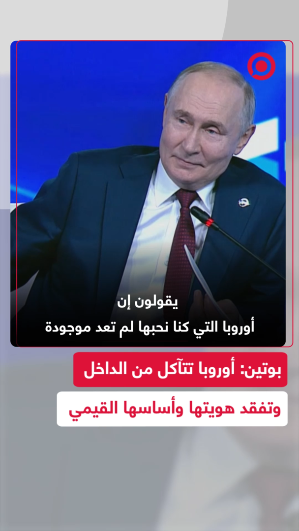 "في هذه الحالة ستختفي أوروبا التي كنا نحبها جميعا".. الرئيس الروسي فلاديمير بوتين، يؤكد أن الأسس الجوهرية المتعلقة بالهوية الأوروبية آخذة في الاختفاء وسط الهجرة غير المنضبطة وافتقاد القارة لقيمها التي بنيت عليها منذ قرون.