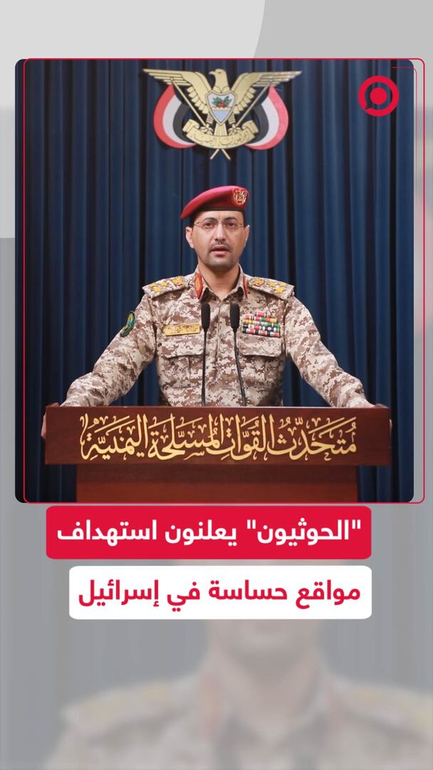 المتحدث العسكري باسم "الحـ ـوثيين" العميد يحيى سريع، يعلن عن استهداف مواقع حساسة في القدس بصاروخ باليستي فرط صوتي من نوع "فلسطين-2" الانشطاري متعدد الرؤوس.