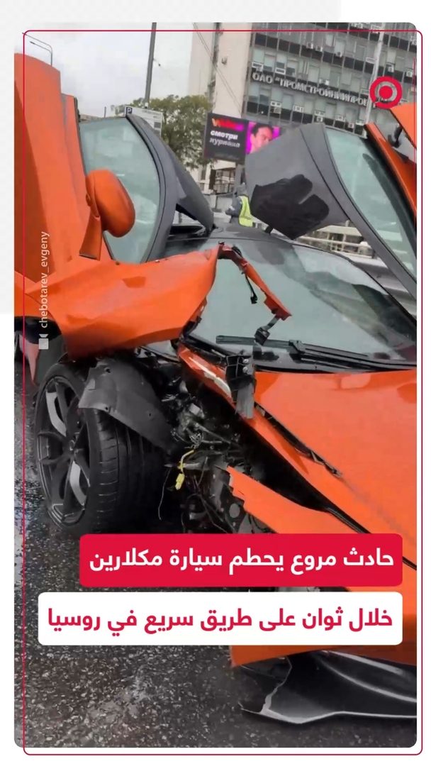حادث مروع يحطم سيارة مكلارين فاخرة خلال ثوان على طريق سريع في روسيا