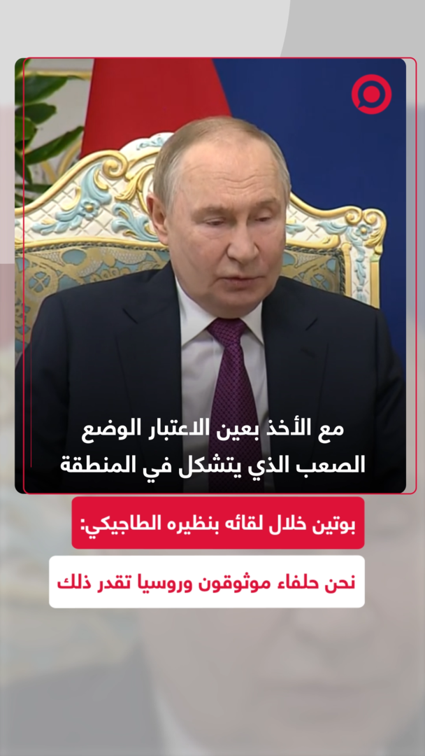 "نحن حلفاء موثوقون".. أكد الرئيس الروسي فلاديمير بوتين خلال اجتماعه مع رئيس جمهورية طاجيكستان، إمام علي رحمون، على أهمية التحالف بين روسيا وطاجيكستان، مشددا على أن موسكو تثمّن هذا التحالف وستظل ملتزمة بتنفيذ جميع الالتزامات.