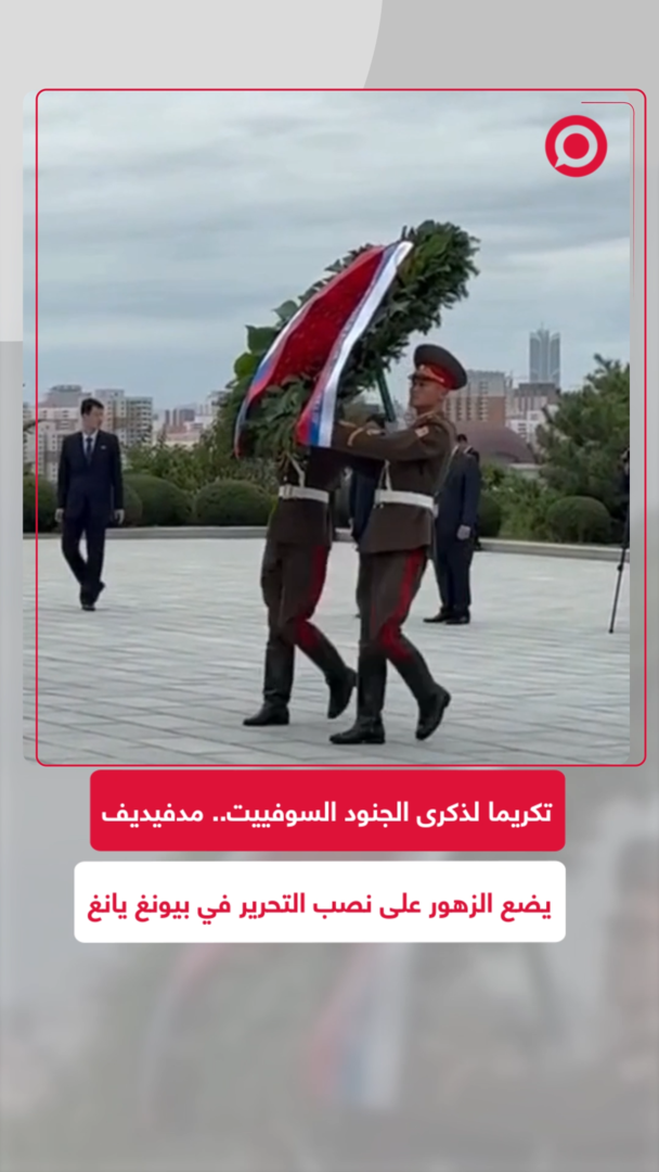 نائب رئيس مجلس الأمن الروسي، دميتري مدفيديف، يضع إكليلا من الزهور تكريما لذكرى الجنود السوفييت على نصب التحرير في بيونغ يانغ. #ريل #كوريا_الشمالية #بيونغ_يانغ #روسيا #الجنود_السوفييت