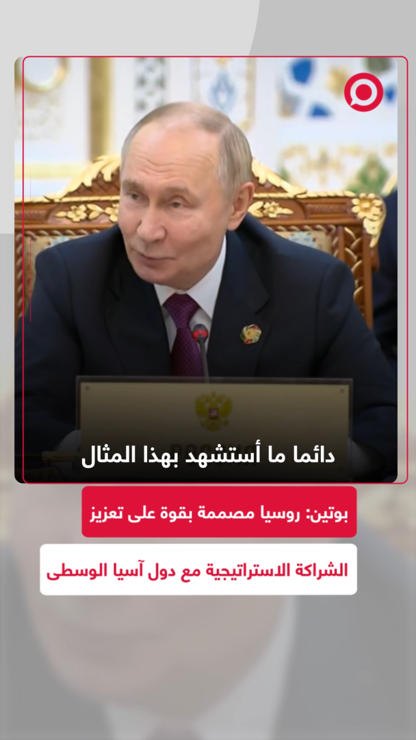 الرئيس الروسي فلاديمير بوتين خلال كلمته في قمة "روسيا - آسيا الوسطى" في العاصمة الطاجيكية دوشنبيه، يؤكد التزام روسيا الراسخ بتعزيز الشراكة الاستراتيجية والتحالف مع دول آسيا الوسطى.