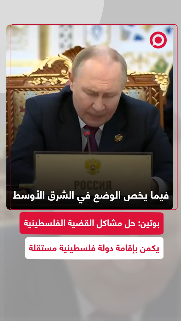 "روسيا مستعدة لتأييد أي طرق سلمية تهدف إلى وقف إراقة الدماء في الشرق الأوسط".. الرئيس الروسي فلاديمير بوتين يؤكد أن حل القضية الفلسطينية ممكن فقط بالطرق السياسية والدبلوماسية، مشيرا إلى أن حل القضية الفلسطينية يكمن فقط بإقامة دولة فلسطينية مستقلة. #روسيا #بوتين #فيديو #ريل