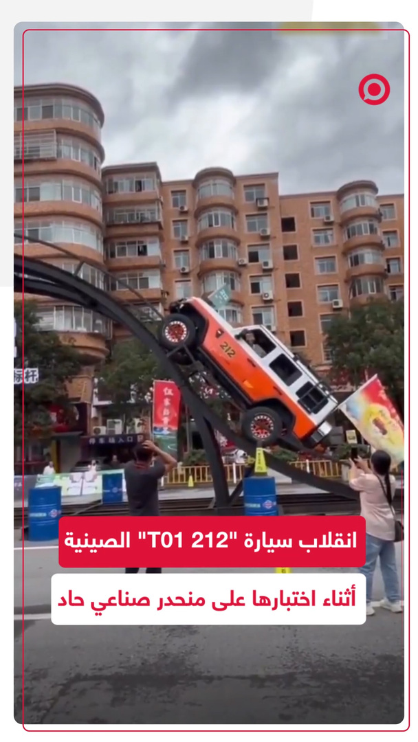 انقلاب سيارة "212 T01" الصينية أثناء اختبارها على منحدر صناعي حاد
