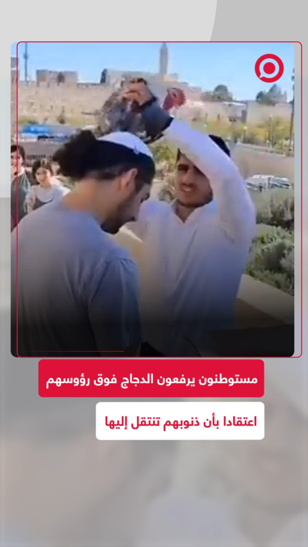 للتخفيف من ذنوبهم، مستوطنون يصطفون وينتظرون دورهم لرفع دجاجة فوق رؤوسهم اعتقادًا بأن ذنوبهم تنتقل إليها، وذلك خلال "عيد الغفران" العبري. #فيديو #اكسبلور #دجاج #مستوطنين #معتقدات