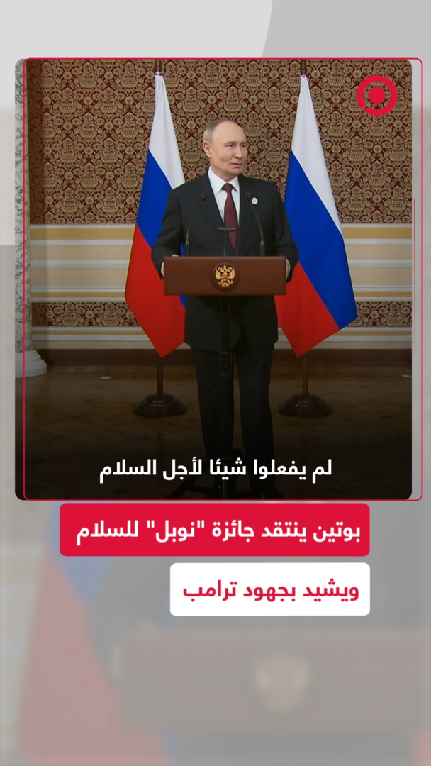 الرئيس الروسي ينتقد جائزة "نوبل" للسلام ويشيد بجهود ترامب