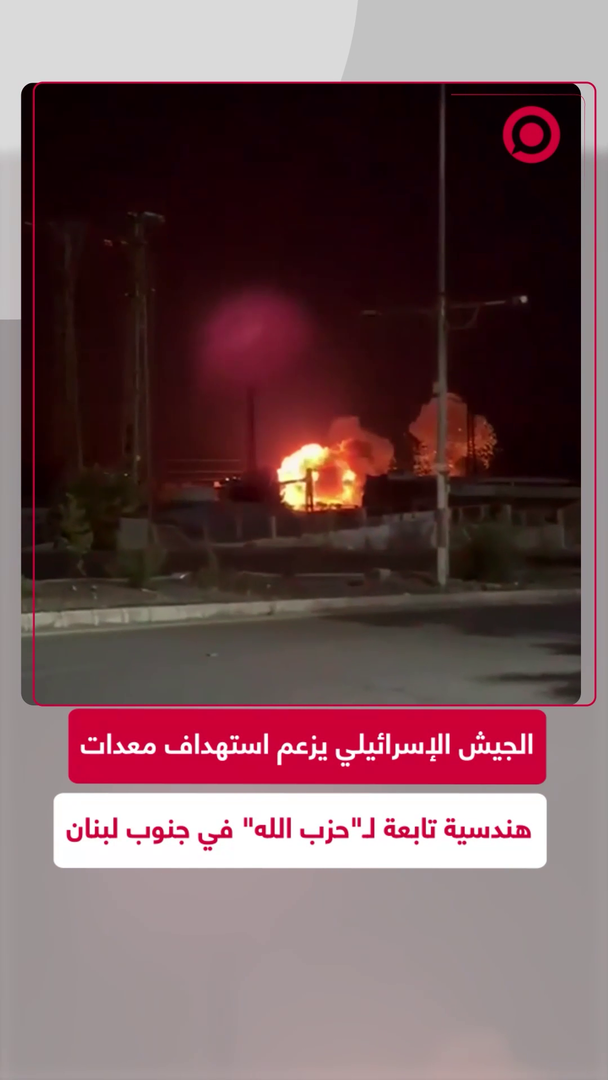 الجيش الإسرائيلي يزعم استهداف البنية التحتية لـ"حزب الله" جنوب لبنان