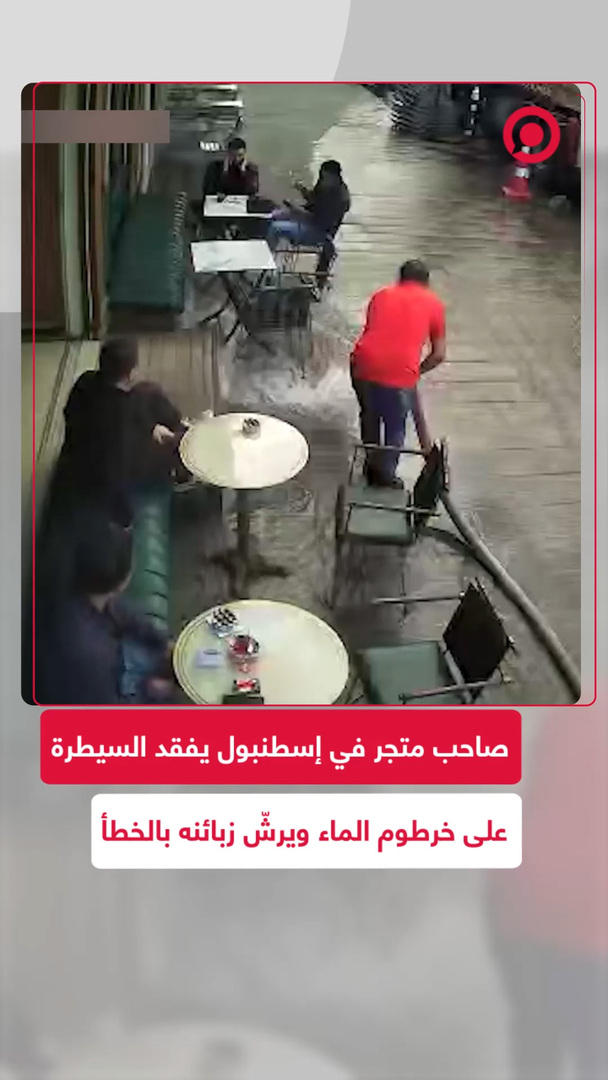 صاحب متجر في إسطنبول يفقد السيطرة على خرطوم الماء ويُغرق زبائنه بالخطأ أثناء التنظيف. #إسطنبول #ماء_مضغوط #غرق #مقهى #فيديو #viral #اكسبلور
