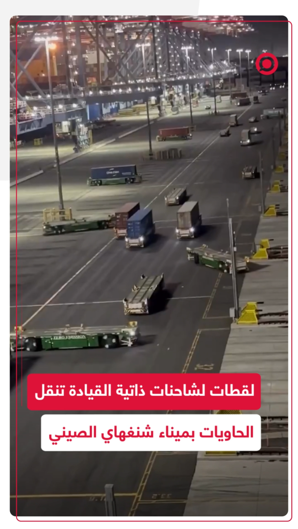 في مشهد يعكس التطور والتقدم التكنولوجي في الصين حيث انتشرت شاحنات ذاتية القيادة تنقل الحاويات في ميناء شنغهاي. #الصين #شنغهاي #شاحنات #فيديو