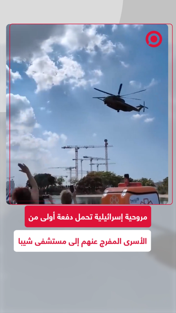 لحظة وصول أول مروحية إسرائيلية تحمل دفعة من الأسرى الإسرائيليين المفرج عنهم إلى مستشفى شيبا للكشف عن صحتهم. #مروحية #اسرائيل #رهائن #حجز #افراج #مستشفى #فيديو