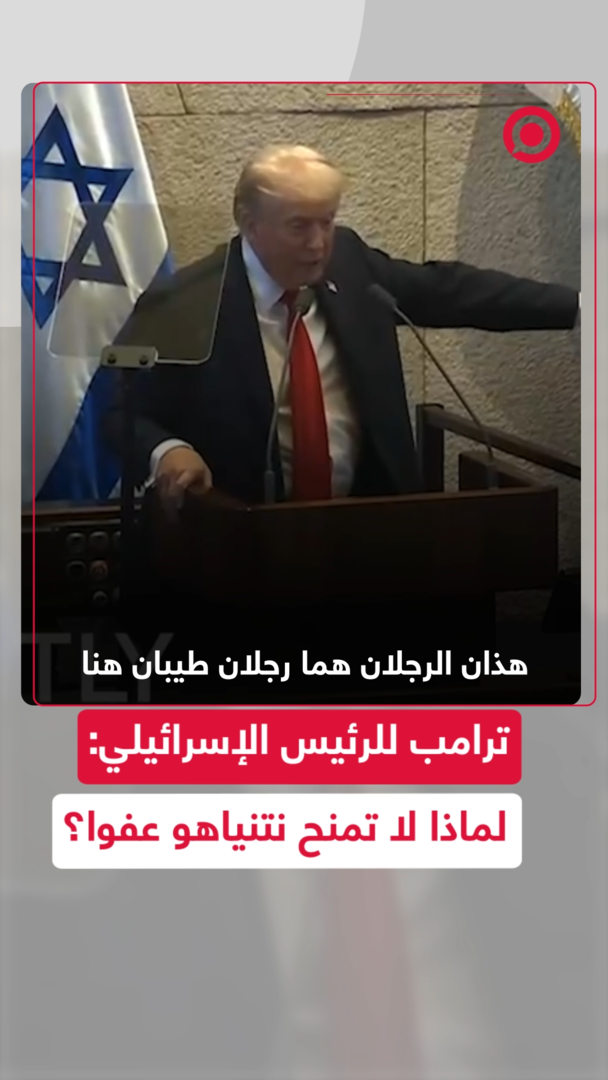 "إنه رجل طيب".. الرئيس الأمريكي دونالد ترامب يطلب عفوا رئاسيا لرئيس الوزراء الإسرائيلي بنيامين نتنياهو من الرئيس الإسرائيلي إسحاق هرتسوغ، وذلك خلال خطاب ترامب في الكنيست الإسرائيلي.