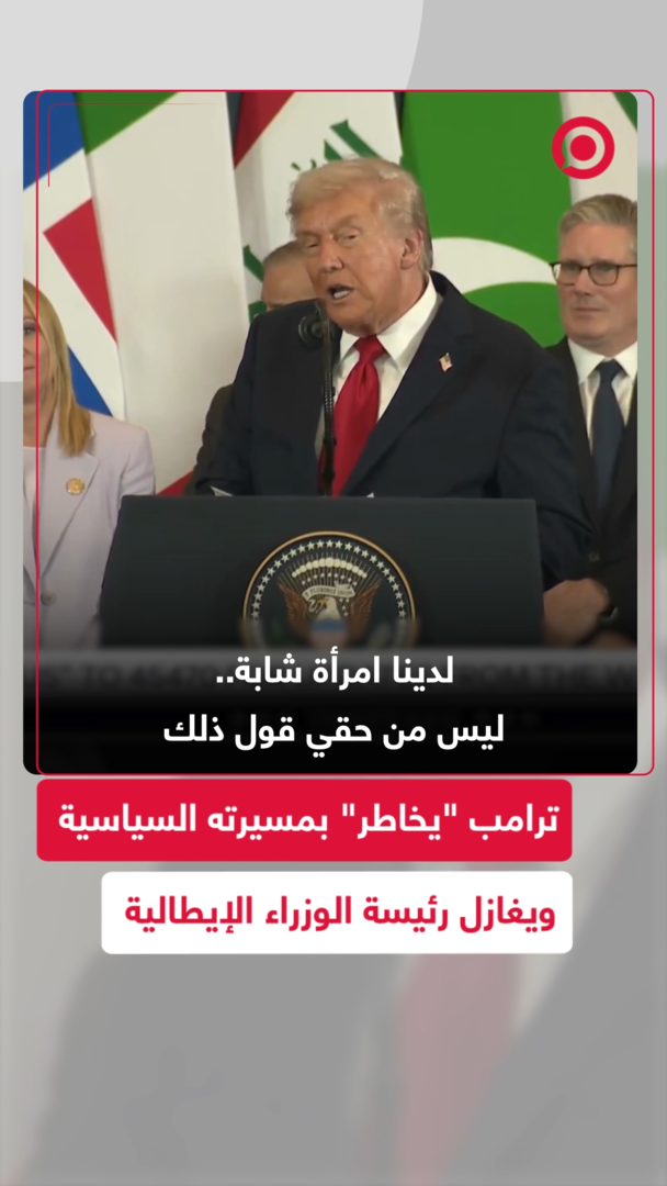 "سأخاطر، أين هي؟ هل يزعجك إن قلت إنك جميلة؟ لأن ذلك صحيح".. الرئيس الأمريكي دونالد ترامب، يتغزل بجمال رئيسة وزراء إيطاليا جورجيا ميلوني خلال قمة شرم الشيخ للسلام وإنهاء الحرب على غزة.