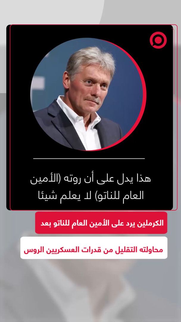 ردا على تصريحات الأمين العام لحلف الناتو.. المتحدث باسم الكرملين دميتري بيسكوف، يرد على ادعاءات عدم كفاءة الطيارين والبحارة الروس التي أطلقها مارك روته، واصفا تلك التصريحات بأنها تدل على جهل تام بالقدرات الروسية الحقيقية. #الكرملين #بيسكوف #مارك_روته #الجيش_الروسي #الناتو #ترند #اكسبلور