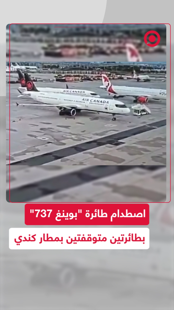 بعد أن أخطأ طاقم الخدمات الأرضية في تقدير المساحة.. اصطدام طائرة طراز "بوينغ 737 ماكس" تابعة لشركة طيران كندا بطائرتين متوقفتين أثناء محاولتها المناورة في مطار تورنتو بيرسون. #كندا #طائرة #حوادث #فيديو