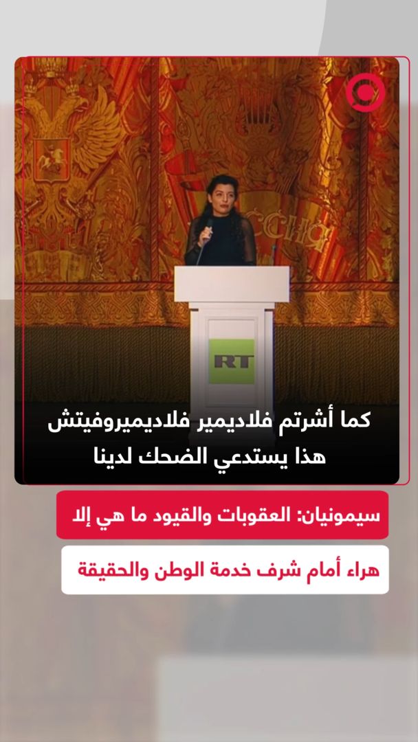 رئيسة تحرير قناة RT مارغريتا سيمونيان، تؤكد أن العقوبات والقيود التي تفرض على الإعلاميين الروس تعد هراء مقارنة بشرف وفخر خدمة الوطن.