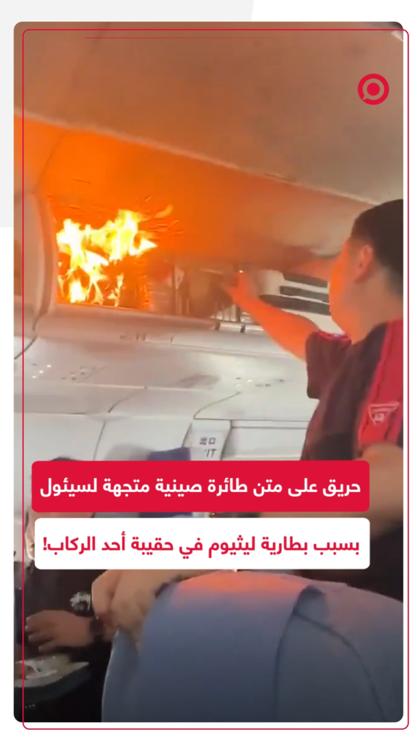 اندلاع حريق على متن رحلة الخطوط الجوية الصينية "CA139" في طريقها بين هانغتشو وسيئول بسبب بطارية ليثيوم في حقيبة أحد الركاب. #الصين #طائرة #حريق #بطارية #حوادث #فيديو