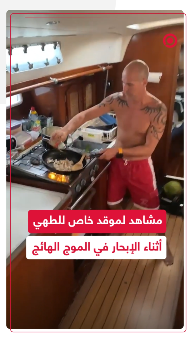 لقطات لموقد خاص يستخدم في الطهي في البحر أثناء هيجان الأمواج حيث يظهر شخص وهو يطهو الطعام والموقد يتأرجح مع حركة الأمواج لكي لا يسقط الطعام. سفينة #موقد#بحر #ترند #فيديو #viral #اكسبلور