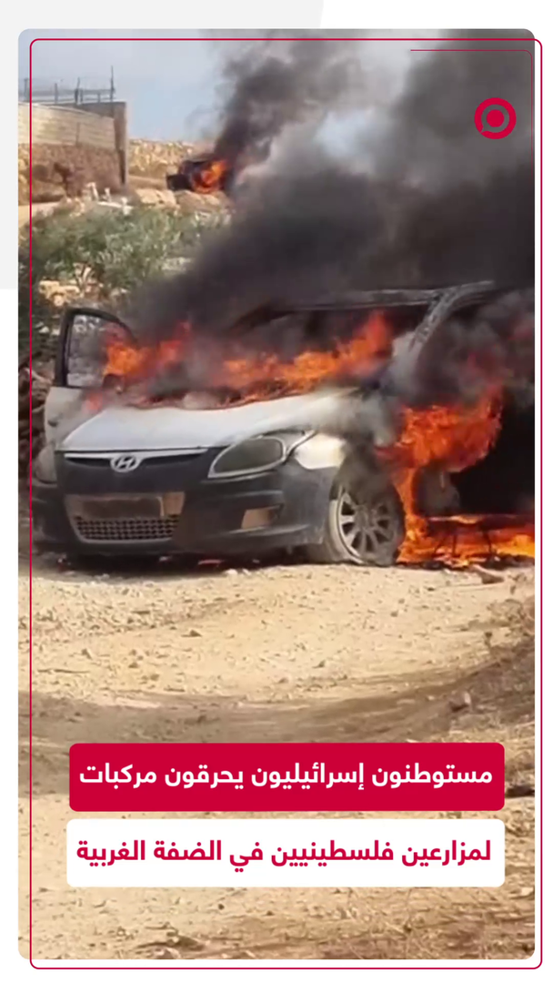 مستوطنون إسرائيليون يضرمون النيران بسيارات المزارعين الفلسطينيين