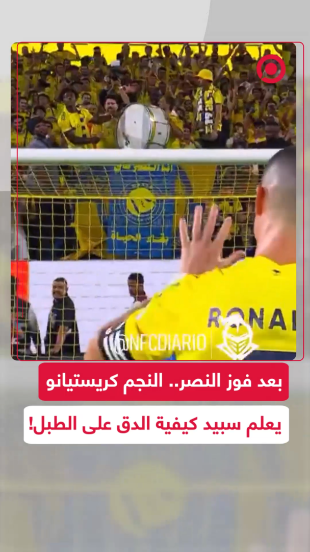 مشاهد للنجم البرتغالي كريستيانو رونالدو وهو يتفاعل مع اليوتيوبر العالمي سبيد، حيث قام بتعليمه كيفية دق الطبول بعد فوز فريق النصر السعودي وسط أجواء حماسية بين الجمهور.