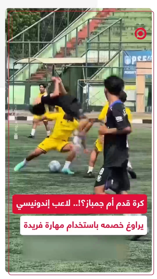 في لقطة مبهرة، نفّذ لاعب كرة قدم إندونيسي حركة استعراضية فريدة خلال المباراة، حيث أوهم خصمه بأنه سيسيطر على الكرة بين قدميه، ليقفز بعدها في الهواء بطريقة بهلوانية تاركا الكرة تعبر من تحته قبل أن يعود لالتقاطها من خلف المدافع. #كرة_قدم #مباراة #لاعب #ترند #فيديو #Viral #اكسبلور