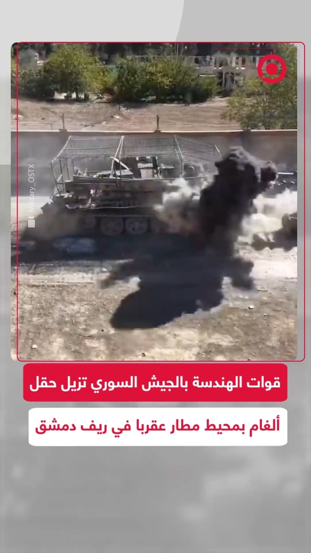 فرق الهندسة التابعة لوزارة الدفاع السورية تنفّذ عملية إزالة لحقل ألغام ضمَّ أكثر من 1100 لغم أرضي في محيط مطار عقربا بمحافظة ريف دمشق، وذلك في إطار جهود تأمين المناطق الحيوية وإعادة تأهيل البنى التحتية العسكرية والمدنية. #ريف_دمشق #إزالة #ألغام #ريل #فيديو #Viral #اكسبلور