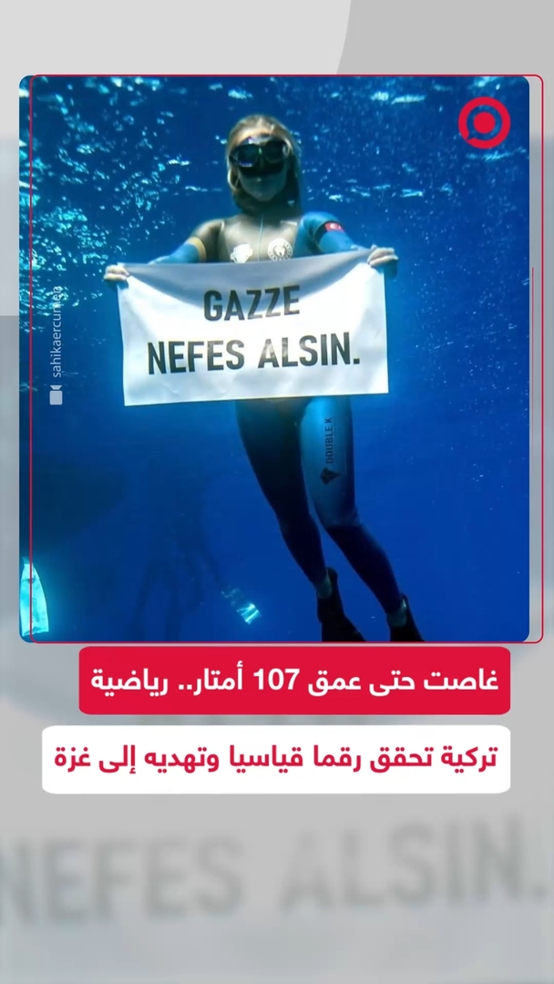رياضية تركية تهدي رقمها القياسي الجديد في الغوص الحر إلى قطاع غزة