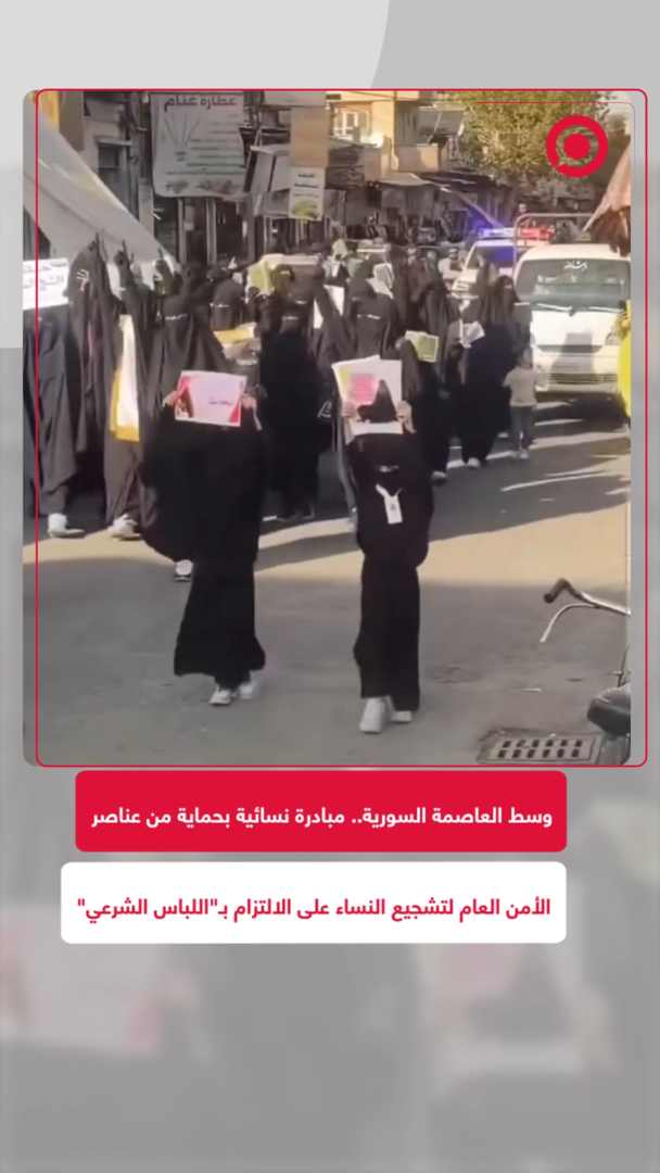 لتشجيع النساء على الالتزام بـ"اللباس الشرعي"، مبادرة نسائية بحماية من عناصر الأمن العام في سوق أبو حبل بالعاصمة السورية دمشق. #سوريا #دمشق #عناصر_الأمن #أبو_حبل #سوق #تشجيع #فيديو