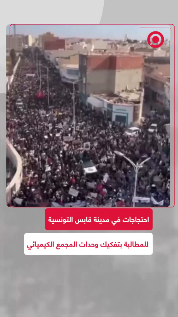 المظاهرات تتواصل للأسبوع الثاني على التوالي في مدينة قابس التونسية حيث يطالب المتظاهرون بإغلاق المجمع الكيميائي في المنطقة وبحسب شهادة السكان المحليين فإن المجمع تسبب في العديد من الأمراض الخطيرة في صفوف الشباب والأطفال.