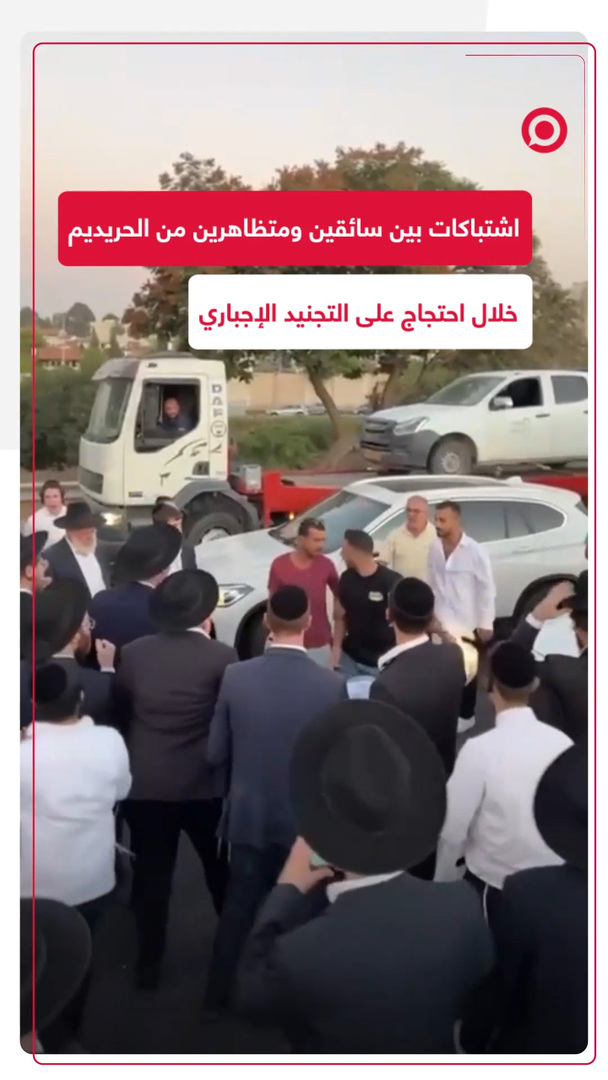 مظاهرة ضد التجنيد تُغلق طريقا سريعا في تل أبيب وتؤدي إلى اشتباكات مع السائقين