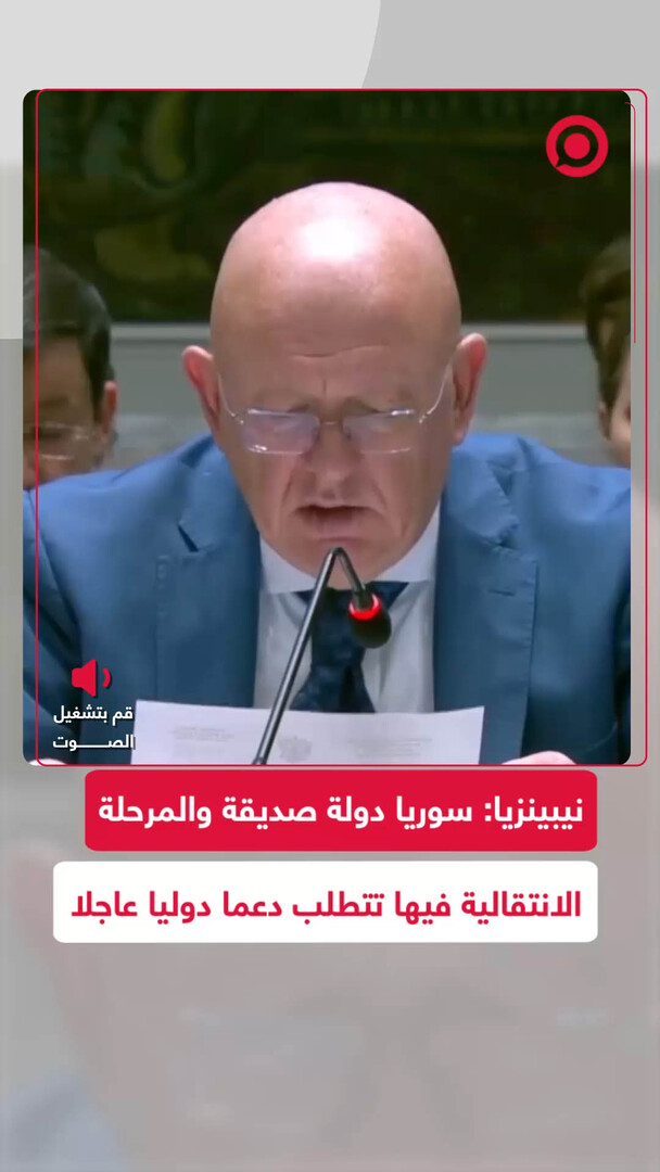 المندوب الروسي في الأمم المتحدة، فاسيلي نيبينزيا، يعلن أن سوريا تواجه تحديات كبيرة في مرحلتها الانتقالية وفي اقتصادها. مؤكدا أن إعادة بناء المؤسسات الحكومية السورية تحتاج لدعم المجتمع الدولي. مع تأكيد استعداد بلاده للمساعدة والمشاركة في دعم سوريا. #سوريا #روسيا #نيبينزيا #الأمم_المتحدة #ترند #اكسبلور