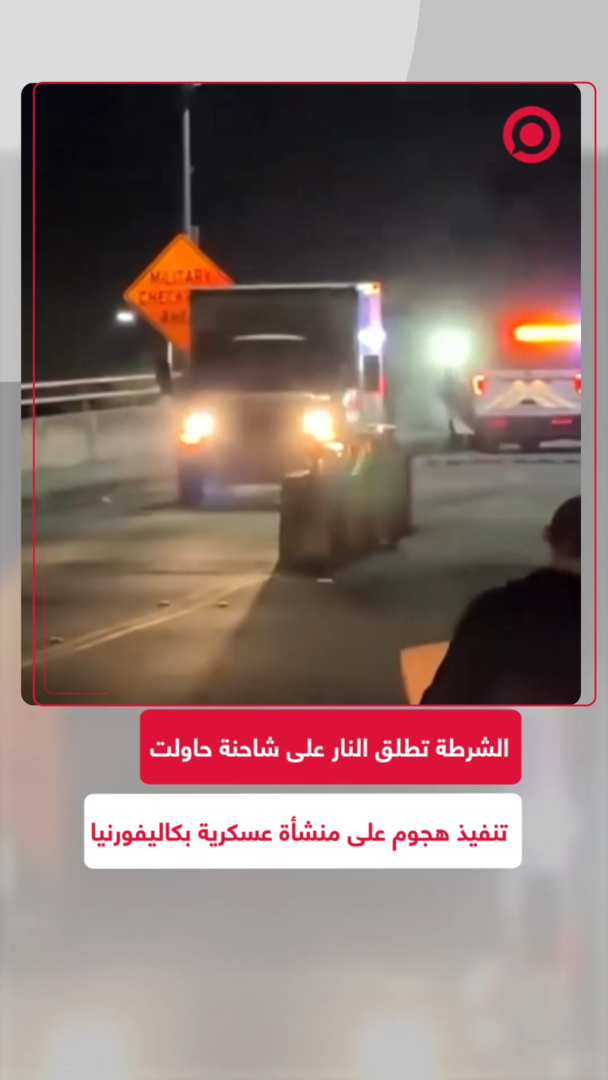 الشرطة الأمريكية تفتح النار على سائق شاحنة بعد أن اندفع باتجاه الضباط قرب قاعدة خفر السواحل في ألاميدا بكاليفورنيا. الحادث جاء عقب احتجاجات ضد سياسات الهجرة التي أعلنها ترامب
