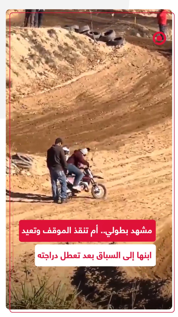 لحظة لا تُنسى.. أم تصلح الدراجة النارية لابنها بعد تعطلها أثناء السباق وتضمن استمراره في المنافسة. #سباق_الدراجات #بطولة_الأم #إنقاذ_طفل #فيديو #viral #اكسبلور