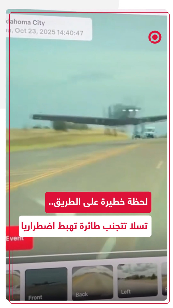 لحظة مثيرة في أوكلاهوما.. نظام القيادة الذاتية في تسلا يتفادى طائرة تهبط اضطراريا على الطريق. #تسلا #القيادة_الذاتية #هبوط_اضطراري #حادث_مفاجئ #فيديو #viral