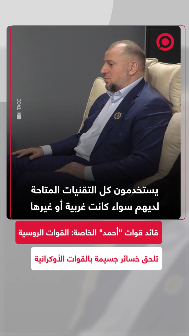 قائد قوات "أحمد" الروسية الخاصة أبتي علاء الدينوف، يؤكد خلال مقابلة له بأن القوات الروسية تُكبد القوات الأوكرانية خسائر جسيمة على خطوط المواجهة، رغم امتلاكهم لجميع أنواع الأسلحة والتقنيات الغربية وغيرها من المعدات.