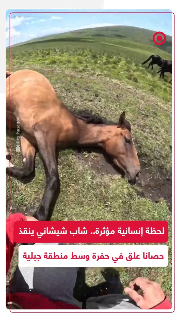موقف بطولي.. شاب شيشاني ينقذ حصانا علق في حفرة وسط منطقة جبلية