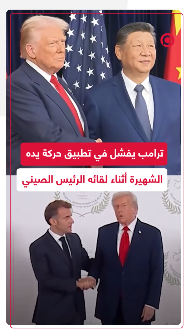 مشاهد متداولة من كوريا الجنوبية أثناء لقاء الرئيسين الأمريكي دونالد ترامب والصيني شي جين بينغ، حيث لم يستطع ترامب التلاعب بيد الرئيس الصيني أثناء المصافحة مثلما كان يفعل مع زعماء آخرين. #أمريكا #الصين #شي #ترامب
