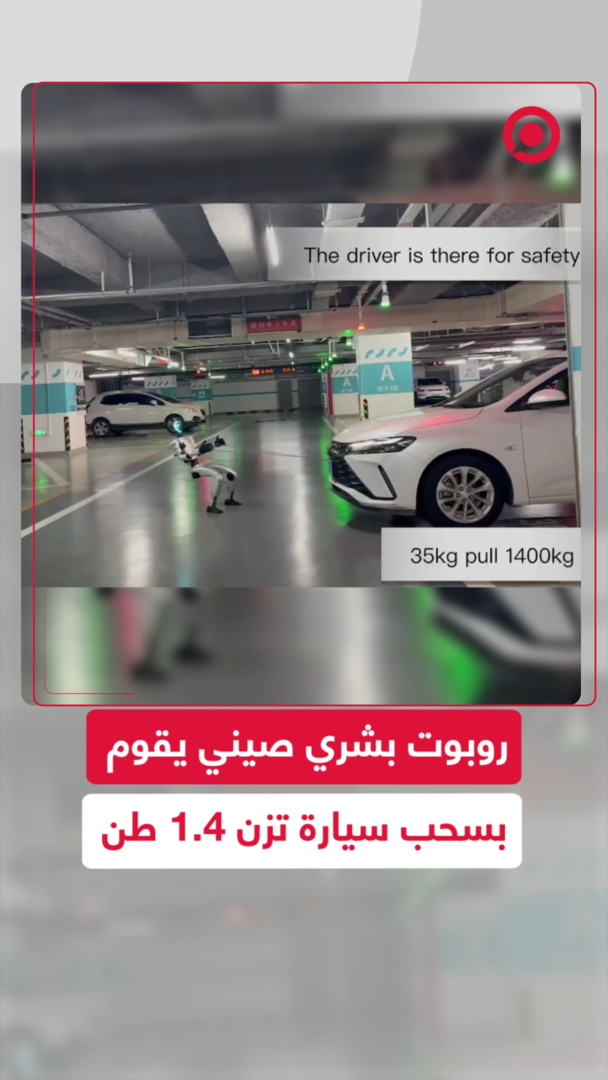 تمكن من سحبها بكل سهولة.. مشاهد لروبوت "Unitree G1" الصيني وهو يستعرض قوته حيث يقوم بسحب سيارة يبلغ وزنها 1.4 طن بالرغم من أن وزنه فقط 35 كغ. #الصين #روبوت #تكنولوجيا #فيديو