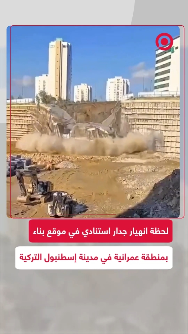 لحظة انهيار جدار استنادي داخل موقع بناء في مدينة إسطنبول التركية