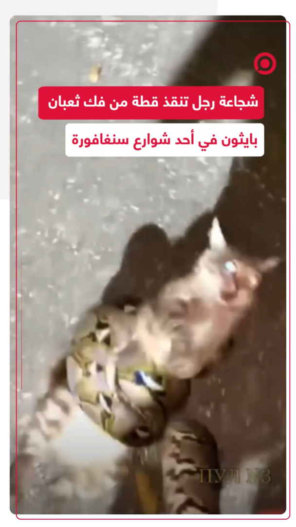 شجاعة رجل سنغفوري تنقذ قطة من فك ثعبان بايثون في الشارع
