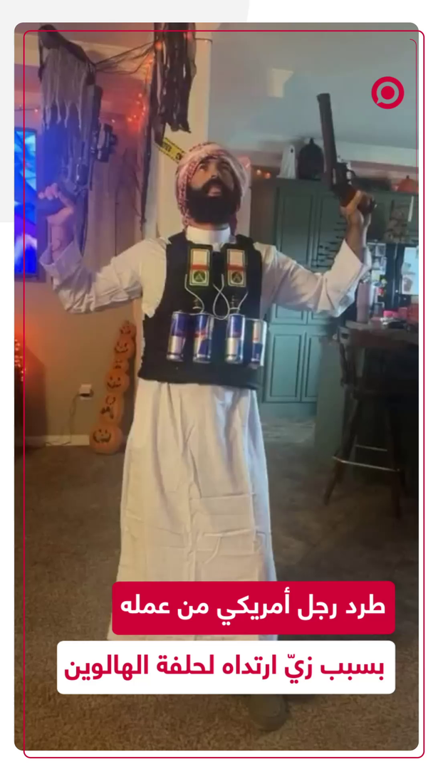 أنتوني بيانكي, رجل أمريكي من ولاية تكساس يخسر عمله بسبب زي تنكري ارتداه لحفلة الهالوين في مكان عمله حيث ارتدى لباسا عربيا وسترة انتحارية تربط زجاجات الكحول "جاغرمايستر" بمشروب الطاقة وهو خليط معروف باسم "قنبلة جاغر" #ترند #فيديو #viral #اكسبلور #هالوين #أزياء