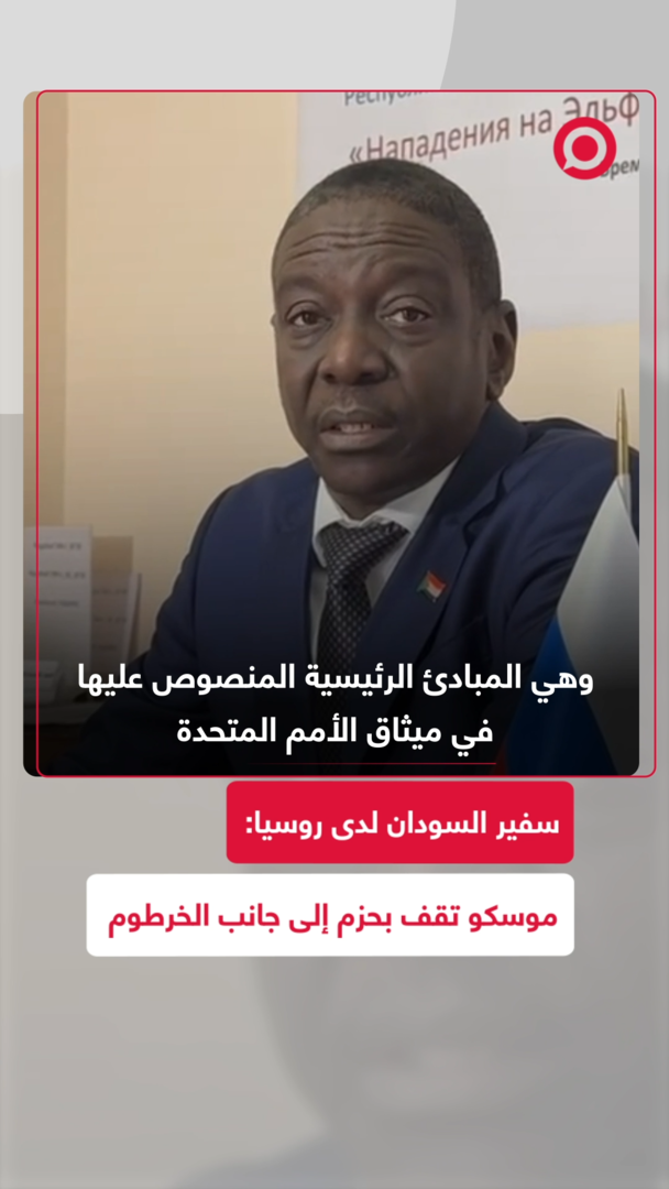 "روسيا داعم قوي للسودان منذ بداية الصراع".. سفير السودان لدى روسيا، محمد الغزالي التيجاني سراج، يشير إلى أن سياسة روسيا تجاه السودان تعكس مبادئها الأساسية في السياسة الخارجية، وهي المساواة في السيادة وعدم التدخل والمنفعة المتبادلة.