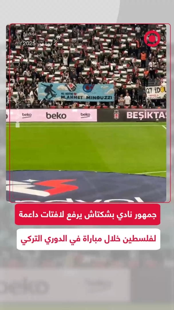 لقطات من مباراة الديربي بين فريقي بشكتاش وفناربخشة مساء أمس الأحد ضمن الأسبوع الـ11 من الدوري التركي، أظهرت قيام جماهير بشكتاش برفع لافتات وأعلام فلسطينية دعما للقضية الفلسطينية. #نادي #جمهور #دعم #ريل #فيديو #viral #اكسبلور