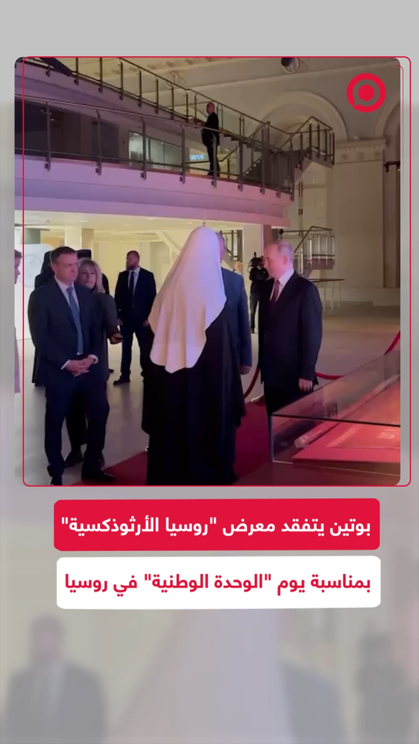 بمناسبة يوم "الوحدة الوطنية".. الرئيس الروسي فلاديمير بوتين يزور معرض "روسيا الأرثوذكسية" المكرَّس هذه السنة للذكرى الـ80 للانتصار على النـ ـازية في الحرب الوطنية العظمى، حيث ضم أكثر من 700 قطعة فريدة، من ضمنها علم النصر. #روسيا #بوتين #يوم_الوحدة_الوطنية #فيديو #ريل