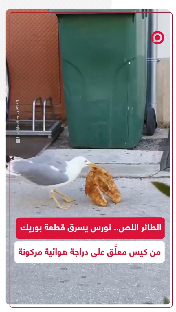 وثقت كاميرا مشهدا طريفا لنورس يتمكن بخفة من سحب قطعة خبز بوريك من داخل كيس معلَّق على دراجة هوائية مركونة، قبل أن يفرّ بها بسرعة. اللقطة حصدت انتشارا واسعا لما أظهرته من ذكاء هذه الطيور. #نورس #سرقة #لص #ترند #فيديو #viral #اكسبلور