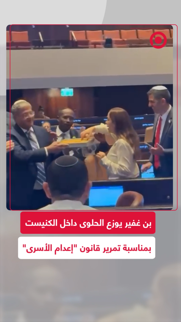 بمناسبة تمرير قانون "إعدام الأسرى".. بن غفير يوزع الحلوى في الكنيست